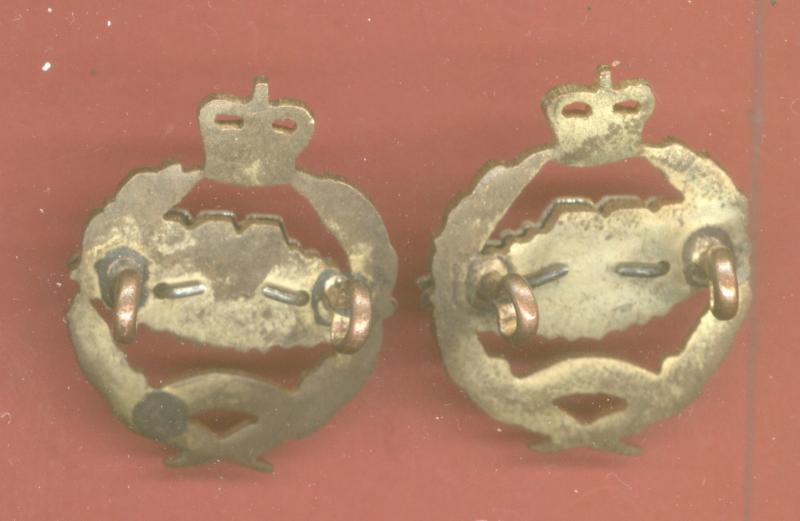 A fine scarce post 1953 die cast gilt with silver overlays facing pair of Officer's Dress collar badges. Two loops each to the reverse. VGC.