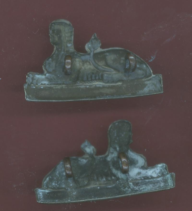 A good die stamped white metal facing pair of other ranks collar badges to the 1st, 3rd and 5th Volunteer Battalions , The Manchester Regiment. Two loops to the reverse of each. VGC.Churchill 1537/38