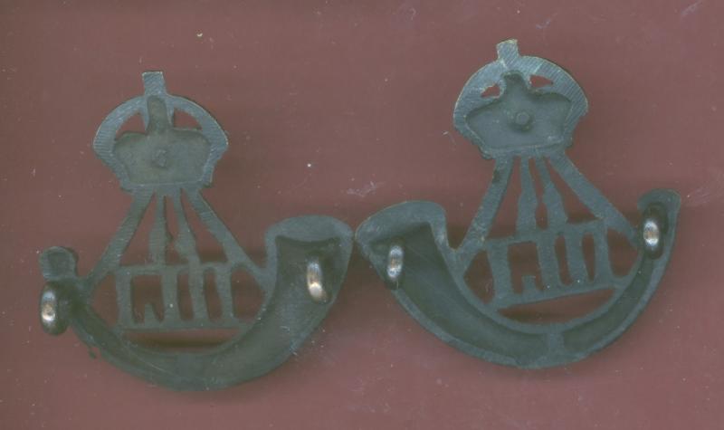 A good scarce post 1902 large pattern die cast bronze facing pair of Officer's Service Dress collar badges. Two loops to the reverse of each. VGC