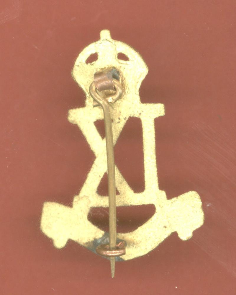 A good die cast brass example. Crowned 'IX' over title scroll. VGC