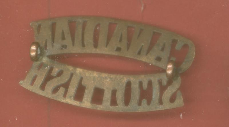 A good scarce brass shoulder title to the 2nd Battalion The Canadian Scottish Regiment. Two loops to the reverse. VGC. Mazeas M.77