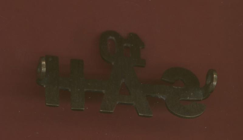 A fine scarce locally made hand cut sheet brass title worn circa 1915-18 by 10th South African Horse. Two loops to the reverse. VGC. Owen 2369.