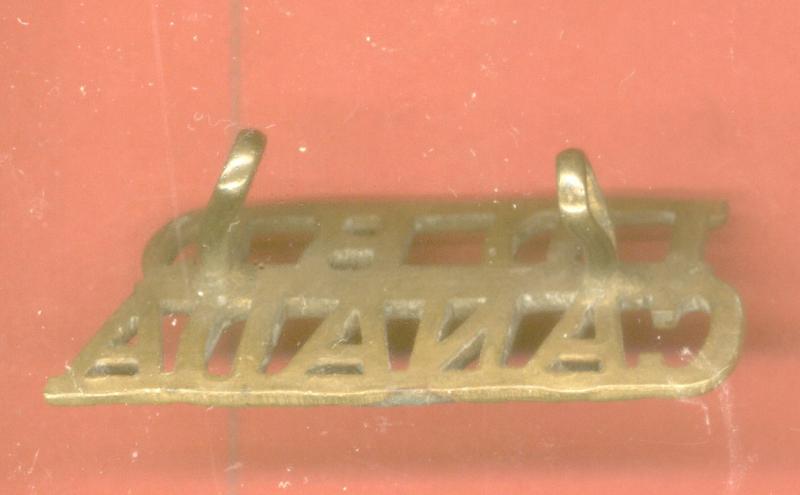 A good scarce brass shoulder title , 1DBQ over CANADA. Two loops to the reverse. VGC.