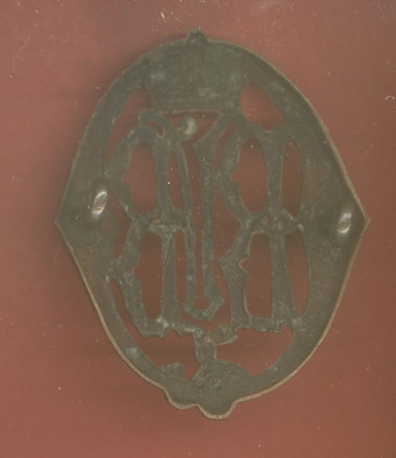 A good scarce pre 1902 die stamped blackened brass example. Two toned loops to the reverse. VGC.