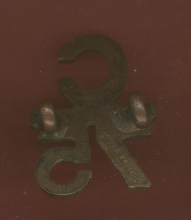A good scarce brass 'C' over '75' small pattern badge. Two loops to the reverse. Makers stamp Tiptaft, B'ham. VGC...