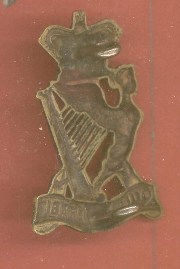 A good scarce die stamped blackened brass example. Crowned Maid of Erin Harp on "Quis Separabit" scroll. Two loops to the reverse. VGC.