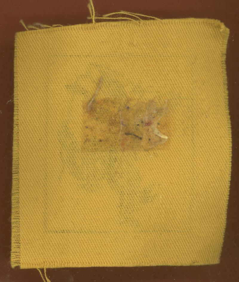 A good scarce printed black silhouette of a Siamese dancer on yellow rectangle with black border. VGC.